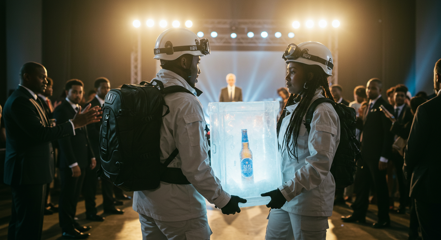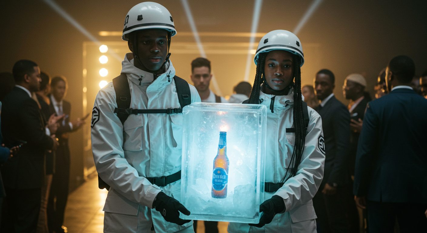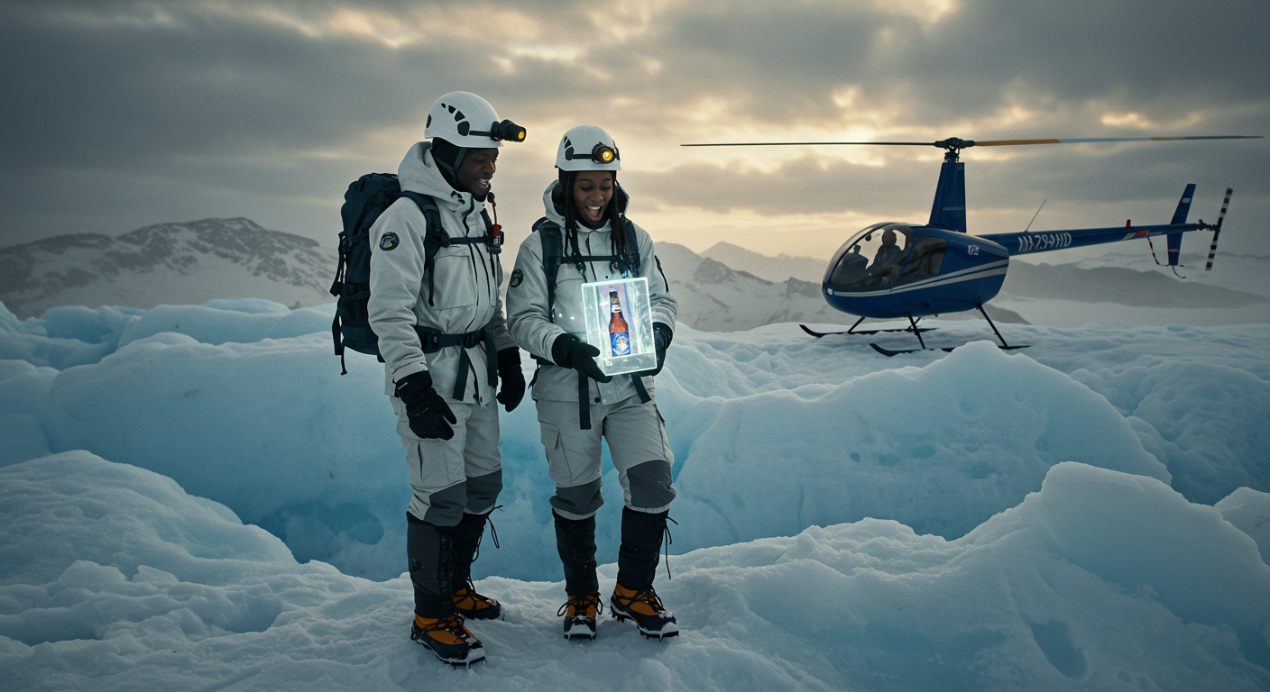 The idea for this video was two people who were hiking on a mountain found something glowing after this they went back to the pickup point on the mountain to transport it via helicopter to Nairobi where it would launch as a new beer and everybody was amazed by it. the mountain was Mt.kenya.
